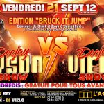 ▆▆▆▆ ★Dans le cadre des Bruck It Jump Sessions à l'ACROPOL★ ▆▆▆▆ Jacky Dias Events et DJ Ray vous présentent: ▬▬▬▬▬▬▬▬▬▬▬▬▬▬▬▬▬▬▬▬▬▬▬▬▬▬ ▆▆▆ ★DJ TYSON VS DJ VIELO★ ▆▆ ★Vendredi 21/09/2012 à l'ACROPOL dès 23h★ IL NE PEUT Y AVOIR QU’UN SEUL VAINQUEUR !!! ▆▆▆▆ ★CONCOURS DE BRUCK IT DOWN AND JUMP (RDX)…★ ▆▆▆▆ ▆▆▆▆ ★1 BOUTEILLE DE CHAMPAGNE A GAGNER !!! ★ ▆▆▆▆ ▬▬▬▬▬▬▬▬▬▬▬▬▬▬▬▬▬▬▬▬▬▬▬▬▬▬▬ ★♪Aux platines♪★ DJ JACK, DJ RAY, DJ PILASOM, DJ VIELO, DJ TYSON ★♪2 salles, 2 ambiances♪★ Zouk, cabo love, dancehall, funana, hip-hop, kizomba, kuduro, funana, ragga, coupé decallé, ndombolo, house ________________________________________________________ ★GRATUIT POUR TOUS AVANT 00H30 UNIQUEMENT LE VENDREDI★ ► 15€ + 1 conso. pour les femmes / 18€ + 1 conso. pour les hommes ★ L ACROPOL C EST 2 AMBIANCES DE FOLIES ASSURÉES! ★ ████████████████████████████ •L'Acropol discothèque• 3 route de Longjumeau 91380 CHILLY MAZARIN ☎ infoline et réservation ANNIVERSAIRE: 06. 66.83.79.89 – jackydiasevents@hotmail.fr ████████████████████████████ EN VOITURE: à 7 minutes de la porte d'Orléans. Service voiturier et grand parking à votre disposition. ████████████████████████████ EN TRANSPORT: RER B & C MASSY PALAISEAU puis BUS 399 arrêt ROUTE DE MASSY LES CHAMPARTS : 22h-22h30-23h-23h30-00h-00h30 RER C - D JUVISY puis BUS 399 arrêt ROUTE DE MASSY LES CHAMPARTS : 22h-22h30-23h-23h30-00h-00h30