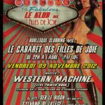 La nuit clubbing punk-rock & new burlesque. Chaque mois, l'occasion de participer à une fête hors du commun où tout le monde est drôle, avenant et sexy. Une soirée déjantée où se déguiser si on en a envie, où danser jusqu'au petit matin avec tous ses copains sur du pur son rock inouïs, dans la joie et la bonne humeur, une nuit où tout est permis, où les consos ne sont pas chères et où tout le monde sourit, ce qui est rare à Paris. Toute l'équipe du Cabaret des Filles de Joie, du Bison Production, du Collectif Surprise Party et de l'Ecole des Filles de Joie prend d'assaut le Klub chaque mois pour faire une grosse fiesta rock'n roll et faire découvrir les coups de cœurs de Juliette Dragon et de Seb le Bison. Pour ouvrir les festivités : WESTERN MACHINE C'est le 1er concert du nouveau groupe de rock de Seb le Bison. Il tient la guitare et le chant lead avec François François à la batterie et l'Homme sans étoile à la basse. Ambiance western, Mississippi, bayou voodoo, sombre et humide, blues rock ensorcelant. A découvrir d'urgence ! Aux platines jusqu'à l'aube : SEB LE BISON, le dandy punk avec du rock rien que du rock et des tubes rien que des tubes. SYLVANIE DE LUTECE, la tigresse des platines et du dance-floor Et toutes les 30 minutes, des shows new burlesque, ambiance Western avec les élèves de l'Ecole des Filles de Joie. Cow Boys & Grrls, catins de saloon, sensualité et humour sont au rendez-vous ! Entrée libre pour les personnes déguisées dans ce thème. Le KLUB DES FILLES DE JOIE 14 rue Saint Denis, Paris 1er. Métro Châtelet / les Halles 22h > 06h 10€ www.collectif-surprise-party.com |