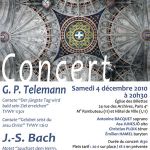 À l'approche des célébrations de Noël, le Bach Collegium Paris vous convie à son deuxième concert ordonné autour d'un programme d'œuvres liturgiques de Bach et Telemann composées pour la circonstance : les cantates "Der jüngste Tag wird bald sein Ziel erreichen" TVWV 1:301 et "Gelobet seist du Jesu Christ" TVWV 1:612 de G. P. Telemann, "Herr Gott dich loben wir" BWV 16 de J.-S. Bach, ainsi que le motet "Jauchzet dem Herrn, alle Welt" BWV Anh. 160 de G. P. Telemann et J.-S. Bach. Pour son deuxième concert, le Bach Collegium Paris réunira une trentaine de chanteurs accompagnés par quatre solistes et un ensemble instrumental de musique baroque, le samedi 4 décembre 2010 à 20h30 en l'église des Billettes, 24 rue des Archives, Paris 4e, M° Rambuteau (11) et Hôtel de Ville (1,11). PROGRAMME Cantate "Der jüngste Tag wird bald sein Ziel erreichen", TVWV 1:301 de Georg Philipp TELEMANN (1681-1767). Cantate "Gelobet seist du Jesu Christ", TVWV 1:612 de Georg Philipp TELEMANN (1681-1767). Motet "Jauchzet dem Herrn, alle Welt", BWV Anh. 160 de Georg Philipp TELEMANN (1681-1767) et Jean-Sébastien BACH (1685-1750). Cantate "Herr Gott dich loben wir", BWV 16 de Jean-Sébastien BACH (1685-1750). DATE ET LIEU DU CONCERT Samedi 4 décembre 2010 à 20h30 en l'église des Billettes, 24 rue des Archives, Paris 4e, M° Rambuteau (11) et Hôtel de Ville (1,11). Durée du concert : 1h30. INTERPRÈTES Ensemble vocal (30 chanteurs) et instrumental (10 instrumentistes) du Bach Collegium Paris sous la direction de Patrizia METZLER. Solistes : Antonine BACQUET (Soprano), Asa JUNESJÖ (Alto), Christian PLOIX (Ténor), Émilien HAMEL (Baryton). LOCATION ET PRIX DES PLACES Plein tarif : 20 € sur place le soir du concert et 18 € en prévente. Tarif réduit : 11 € (moins de 30 ans, demandeurs d’emploi, justificatif à fournir au guichet) sur place comme en prévente. Gratuit pour les moins de 12 ans accompagnés. Réservation et paiement par carte bancaire en ligne sur : www.bachcollegiumparis.org. Billetteries partenaires : www.fnac.com / www.ticketnet.fr. La vente de billets sur place ouvrira trente minutes avant le début du concert, à 20h, en l'église des Billettes, 24 rue des Archives, Paris 4e, M° Rambuteau (11) et Hôtel de Ville (1,11). Sur place seuls les règlements en espèces ou par chèque pourront être acceptés. Les places ne sont pas numérotées, le placement est libre. |